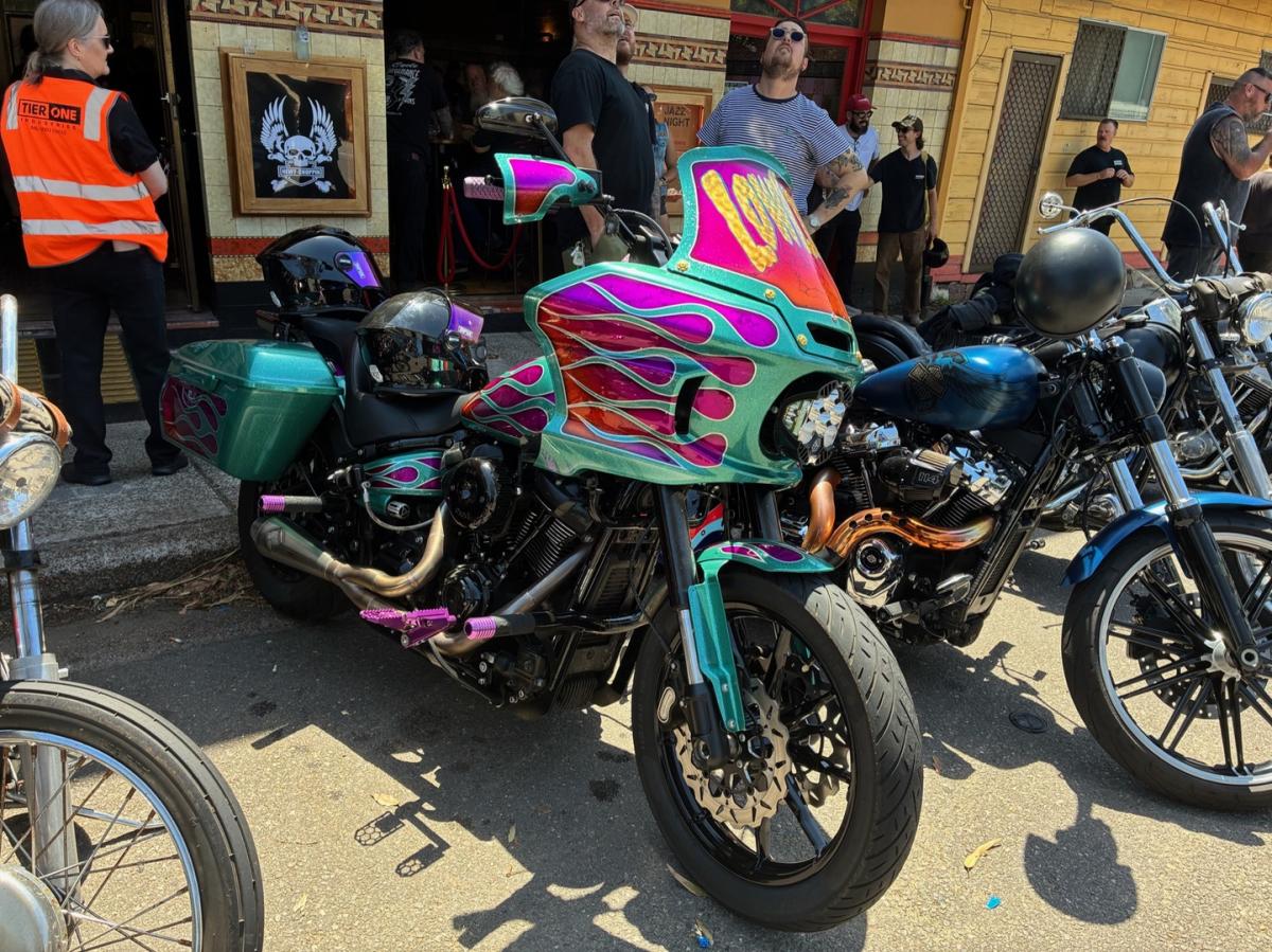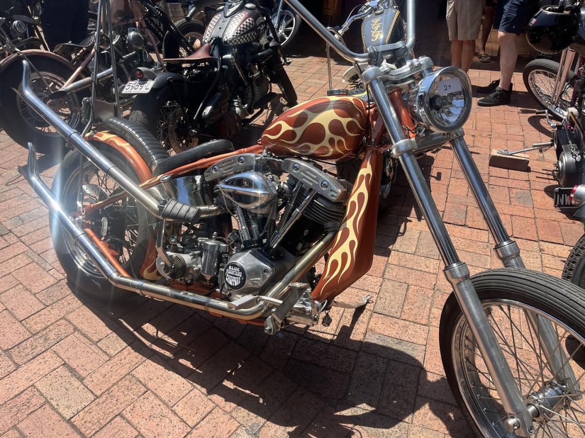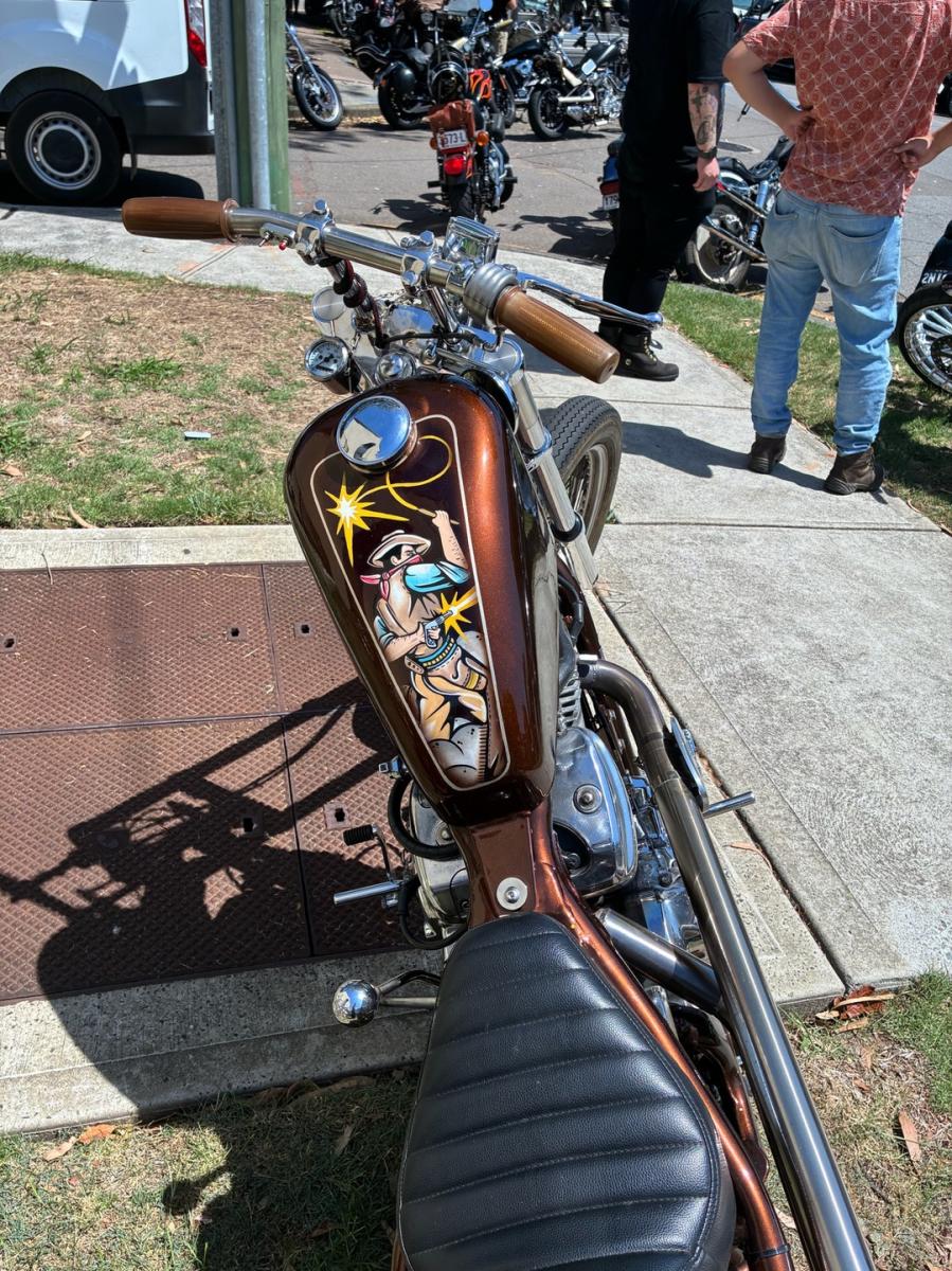 The bikes were the real thing. Properly restored classics sat comfortably alongside the sharp end of Australia’s bad arse chopper scene. Nothing felt staged or over-polished. These were machines built to be ridden not hidden, argued over, and occasionally leaked on. The mix worked, history parked next to evolution and nobody seemed interested in drawing lines about what was “right” or “wrong.”